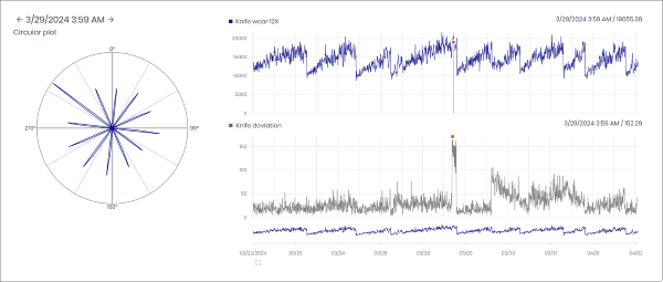 SPM’s lösning för övervakning av knivslitage ger information om knivarnas kondition och erbjuder beslutsstöd för hantering av knivbyten (även kallat postning).